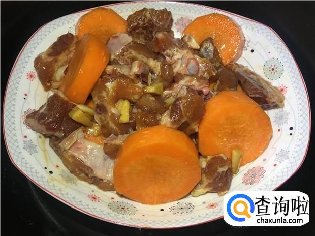 排骨、红萝卜、姜、蒜、花生油、酱油、蚝油、盐、料酒