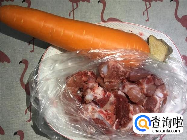 把食材准备好,新鲜的排骨一根,红萝卜一根,姜蒜适量。