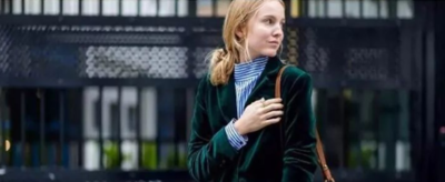 墨绿色虽然是深色系,没有黄色那么明亮,所以有人会觉得它显老,如果是这样的话,就把它和粉色搭配。可以选择一件墨绿色的毛衣,下半身搭配粉色的半身小短裙,注意,并不是所有的粉色都可以和它搭配,最合适的是带有灰色调的粉色,它有个好听的名字叫烟粉色。这两种颜色结合,既不会让人觉得装嫩,又给人一种元气满满的少女感。