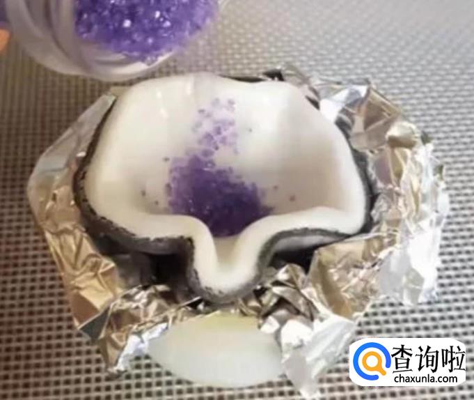 将白巧克力和黑巧克力分别装在碗中,放入烤箱中烤,然后放入冰箱,三个小时后拿出来,晶洞就制作完成。