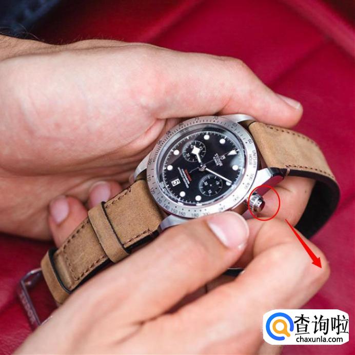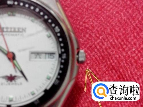 首先,我们找到机械表的表冠也就是可以调节时间日期的转钮,通常是在手表的右侧会有一个突出的钮。
