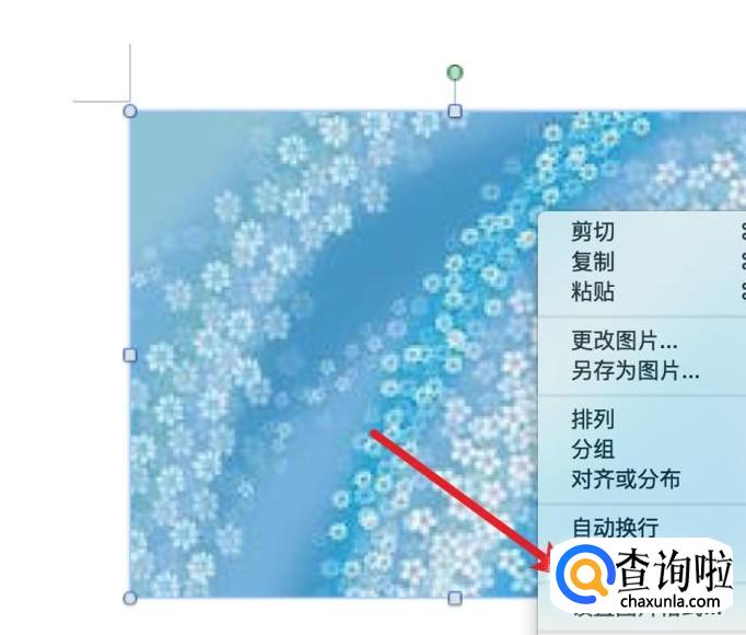 右键点击这张图片,并点击菜单上的‘设置图片格式’。