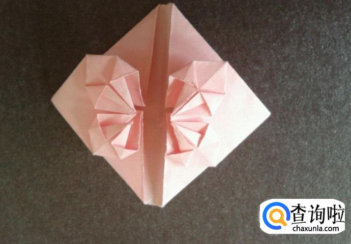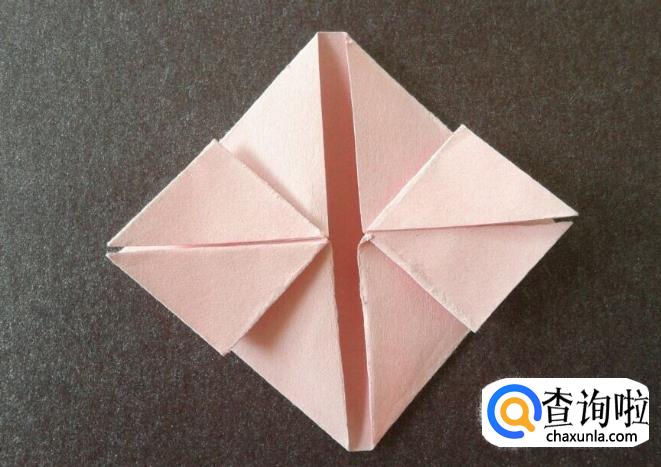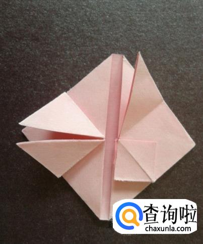 这时会发现中间会有一个缝隙,把它对折,然后将两边的小角折藏进去,然后将上面的叠下去就大功告成。