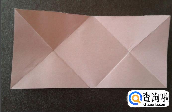 把小正方形的两个边折成图片所示那样,一定要每个都与相应的线重合。