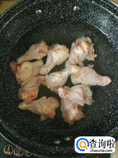 我们首先将从超市购买的小鸡腿用清水洗净,然后放入锅里面煮熟去除浮沫,为了去除腥味,可以加入一些姜片。