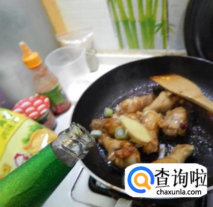 然后在锅里面加入一瓶酒,先转大火煮开,然后转小火慢慢熬制,等汤汁变少收汁就可以关火了。