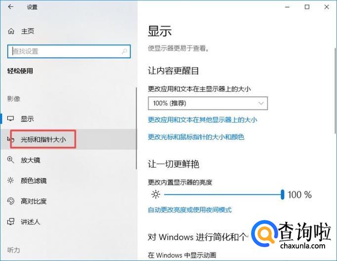 弹出的界面,我们点击光标和指针大小;