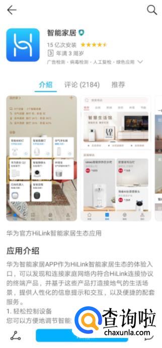 应用市场搜索下载“华为智能家居”APP。