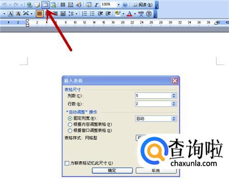 点击文档上方的插入表格小图标,出来一个插入表格设置框。