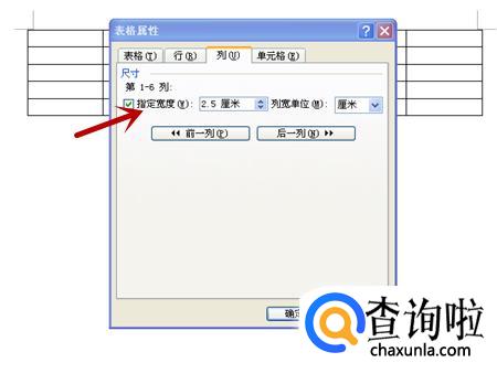 然后点击列,在指定宽度中设置自己想要的列宽,然后点击确定。