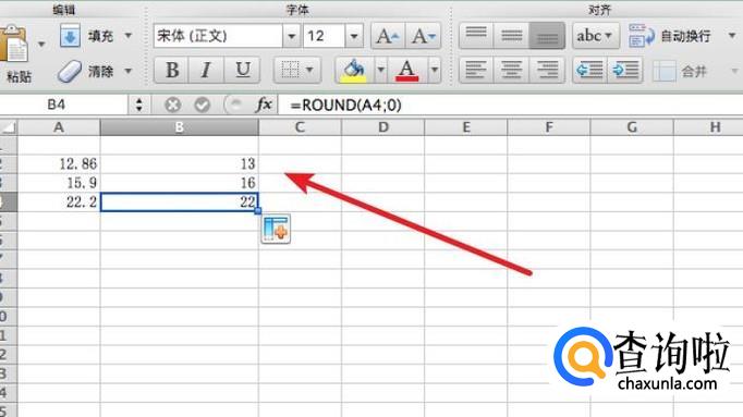 要将其进行四舍五入,我们可以使用Round函数,在B2单元格里输入公式:=ROUND(A2;0)