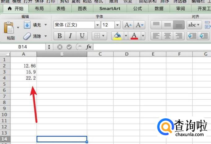打开excel,在A列输入几个带小数的数据。
