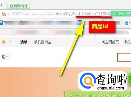 打开商品的详情页面,在页面的顶端这里,如下图所示,显示着该商品的链接。在链接的最末尾这一组数字就是该商品的id;商品id是独一无二的,每款商品只有一个id