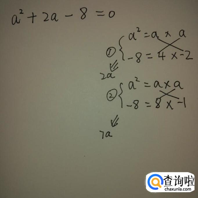 分解二次项,只有一种结果,两个a相乘,分解常数项,有两种结果,4乘以2,8乘以1