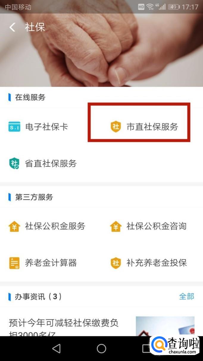 进入”社保“后,如图选择”市直社保服务“进入。
