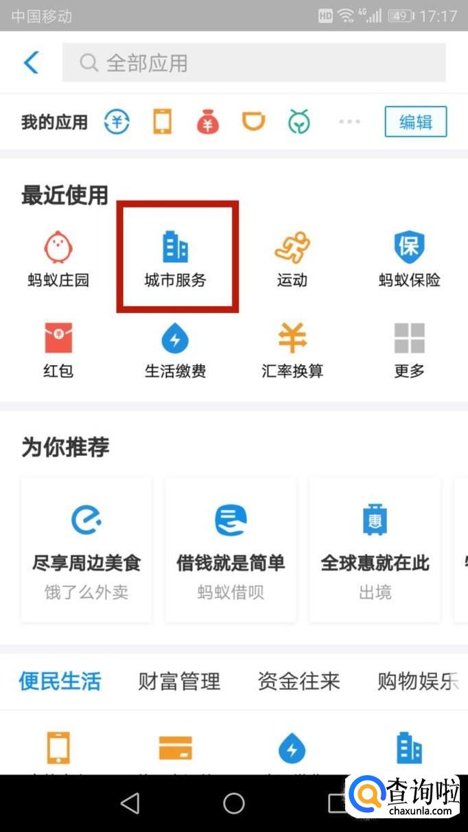 进入后,选择”城市服务“进入。