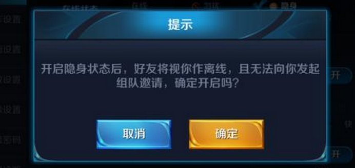 隐身功能存在每周使用次数限制,而且处于隐身状态的召唤师,他人会将视他为离线状态,在组队列表,排行榜,好友列表,战队列表等地方显示为状态为离线,也就是说,要想隐身就不能一起开黑。