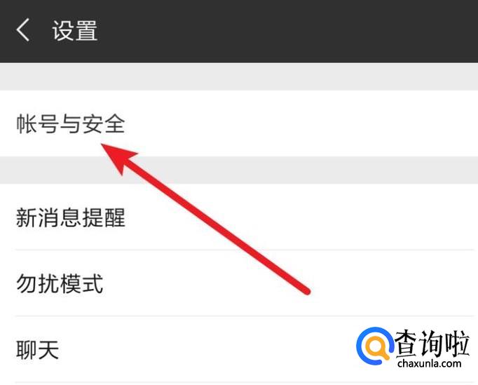 在设置页面,点击第一项的‘账号与安全’。