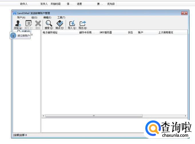 安装完成后,打开软件,我们看到上面的提示说,让我们新建一个邮箱账户(这个邮箱账户是用来发送邮件使用的)。