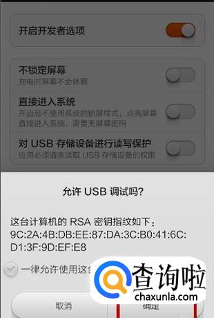 进入之后,打开USB调试功能即可,如图所示。