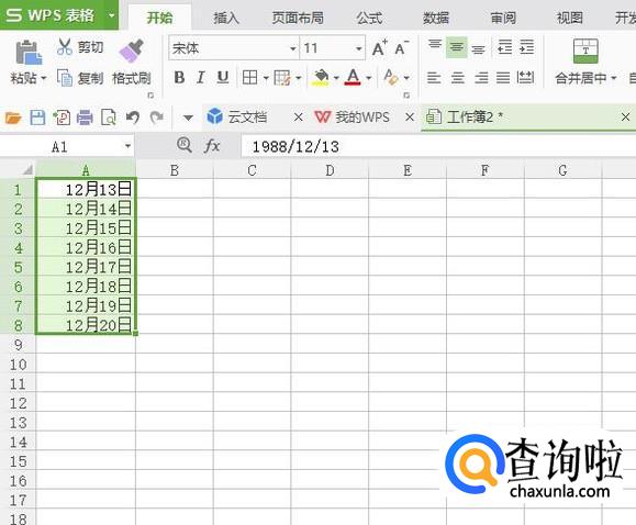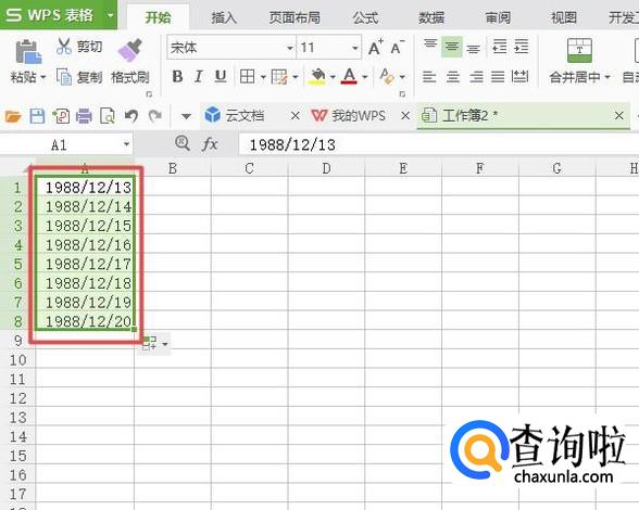 然后我们在表格中输入一些日期,之后选中这些单元格;