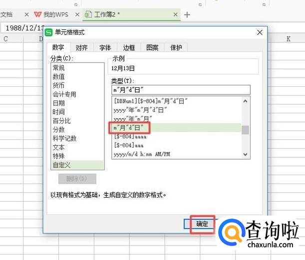 弹出的界面,我们可以看到默认的就是自定义,我们点击选择其中一个格式,然后点击确定;