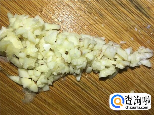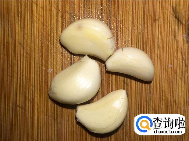 蒜头四瓣,剁成蒜蓉,备用。
