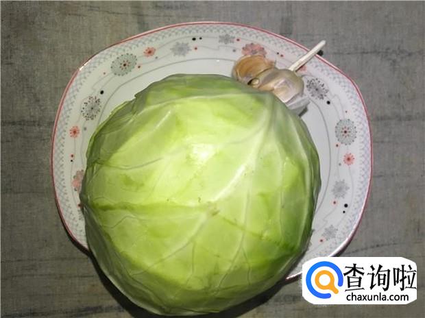 准备好所有原材料:包菜一颗、蒜头一个。