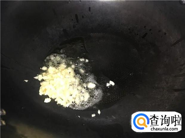 热锅下油,放入蒜蓉煸香,再放入清洗好的包菜,快速翻炒均匀。