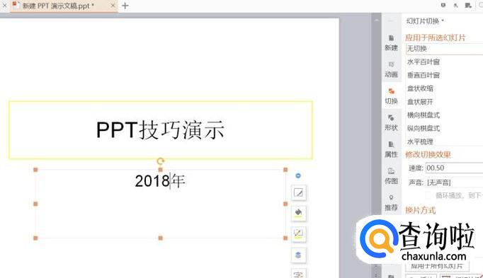 设置幻灯片的切换模式,也是挺有意思的。可以各种形式,进行幻灯的页面转换。