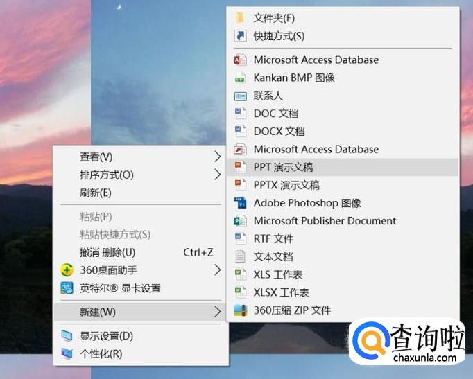 我来给大家演示技巧,就先新建一个新的PPT文件吧。在桌面上右键单击,就可以找到。