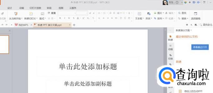 进入到新的PPT里面,就能看到,需要我们添加标题等的,还可以在旁边添加模板。