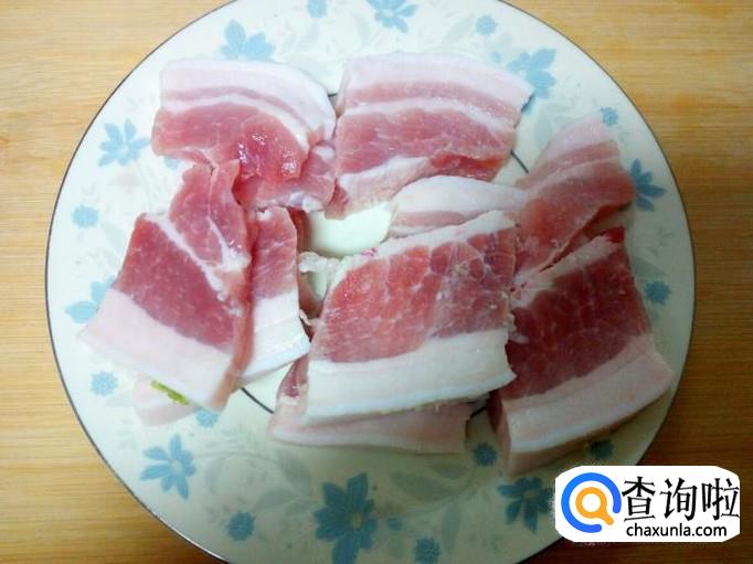 五花肉用水冲洗干净,控干水分,切成大一些的块。