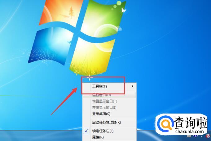 右击【任务栏】,在弹出的上拉菜单中,点击【工具栏】,如下图所示: