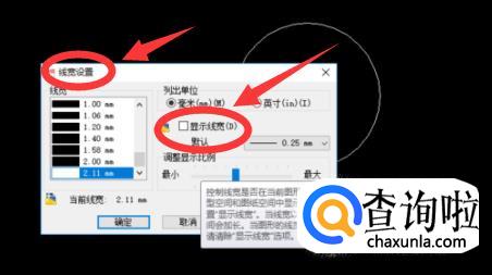弹出线宽管理窗口后,找到【显示线宽】,并在前面的小框中点上【√】,这样就会显示出来啦。