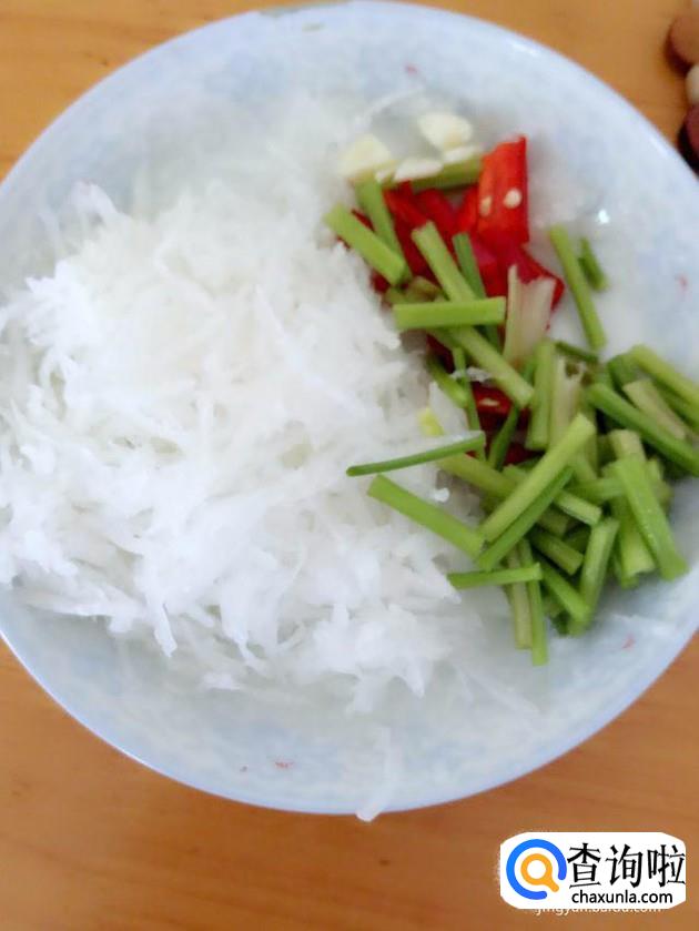 白萝卜切丝,可以放少许盐腌制一下,除去水分,葱,蒜,芹菜切碎,