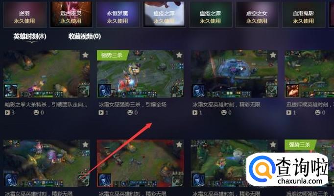 进入之后你会看到有很多的自己的英雄时刻的视频了,那么你要做的就是选择你想要看的点开就可以看了。