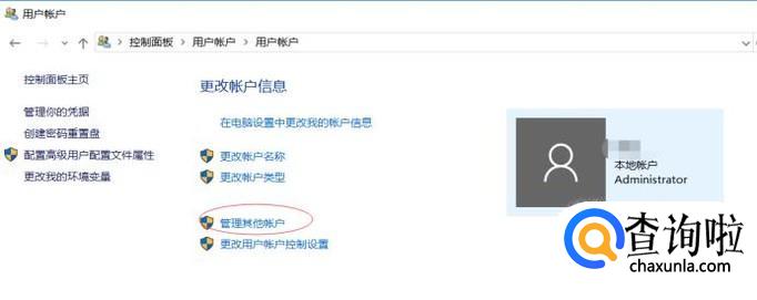 现在我们创建一个新用户,选择创建后进入账户管理界面,选择管理其他账户