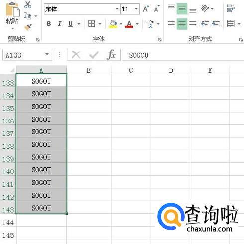 鼠标放在单元格的右下角填充柄上,点住向下拉,即可快速填充SOGOU