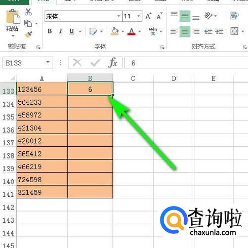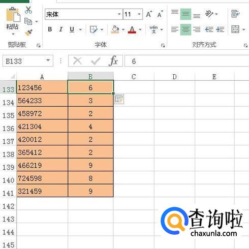 比如,下图中的表格,在B133单元格中,输入A133单元格内数据最后一位数字:6