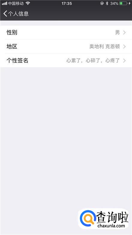 接着点击个性签名,如下图所示。