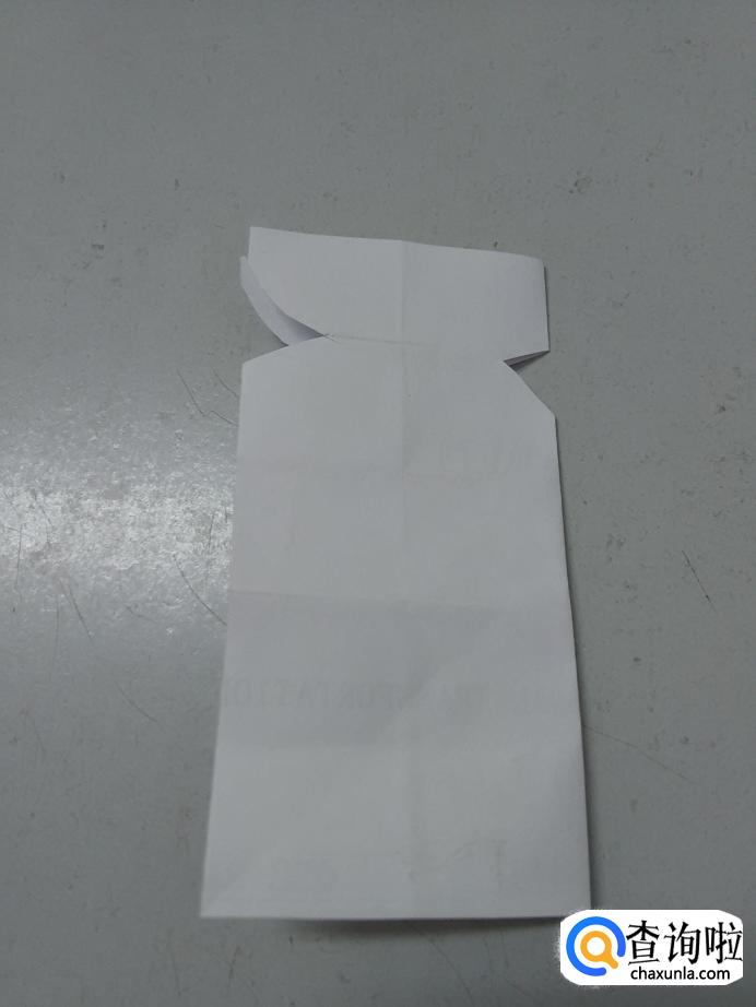 把纸的右半部分从中间第三条横线向上对折,左下方和右下方各剪掉一个小三角。