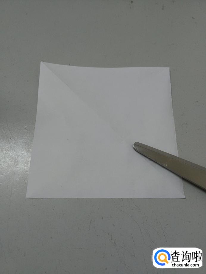 再把正方形右侧四分之一部分向左折,从下方剪掉一个小三角。