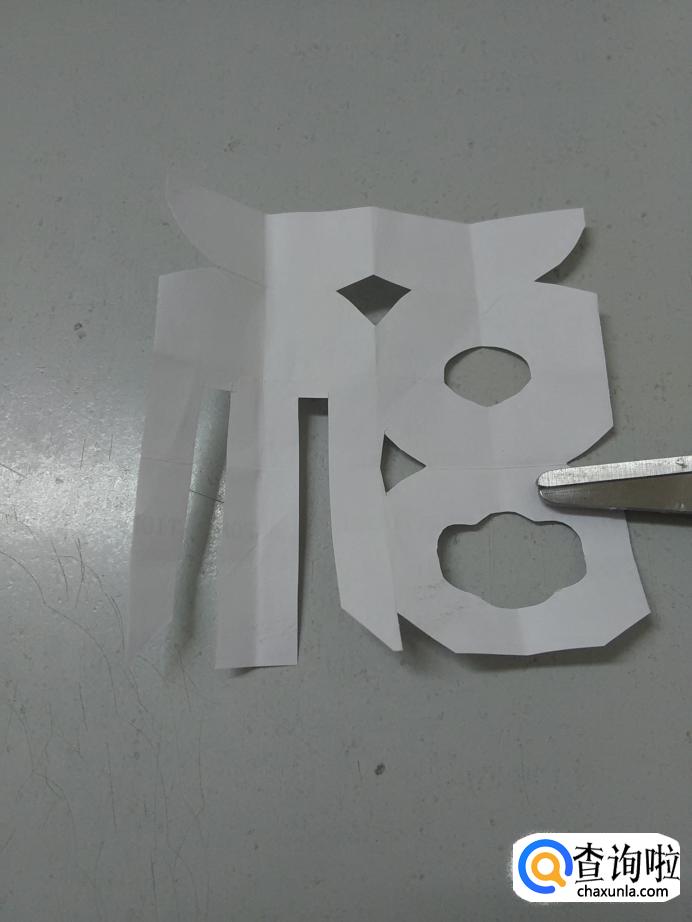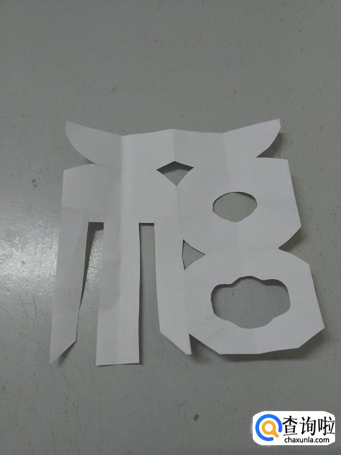 把纸全部打开,一个福字就剪好了。