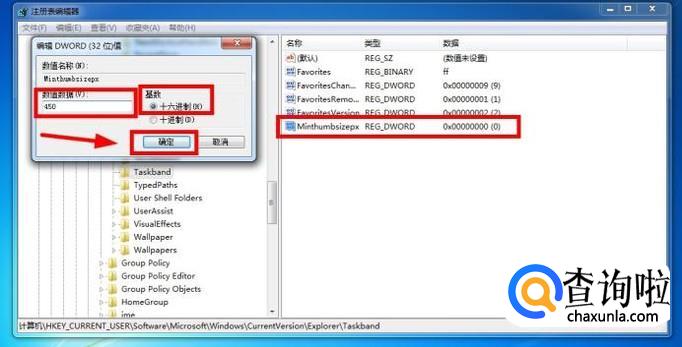 然后双击该值,在“数值数据”中填写“450”;