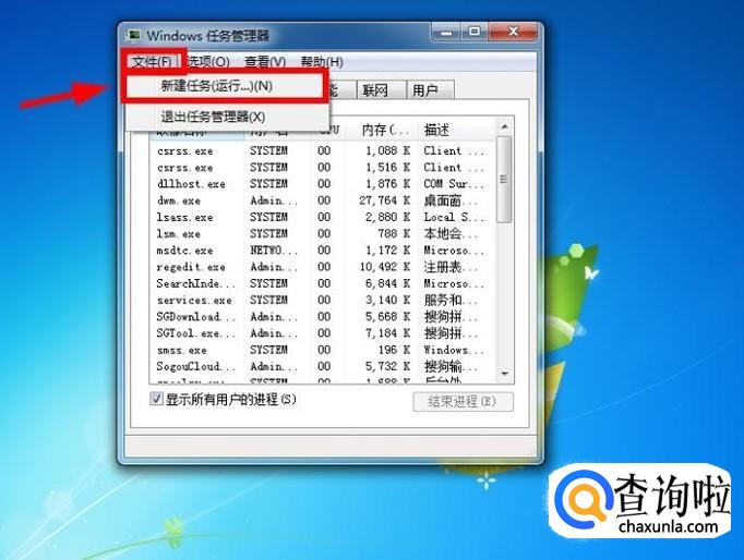 然后点击任务管理器“文件——新建任务”