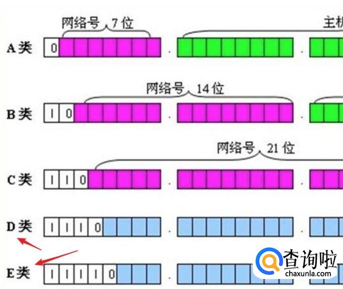 D类和E类比较少用,其中D类用来组播的,E类只是试用的。