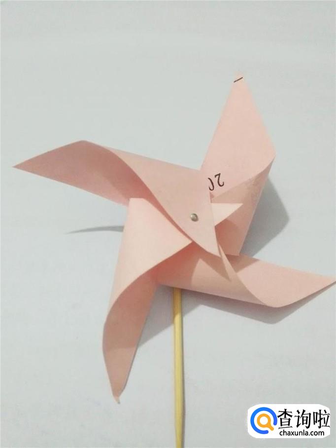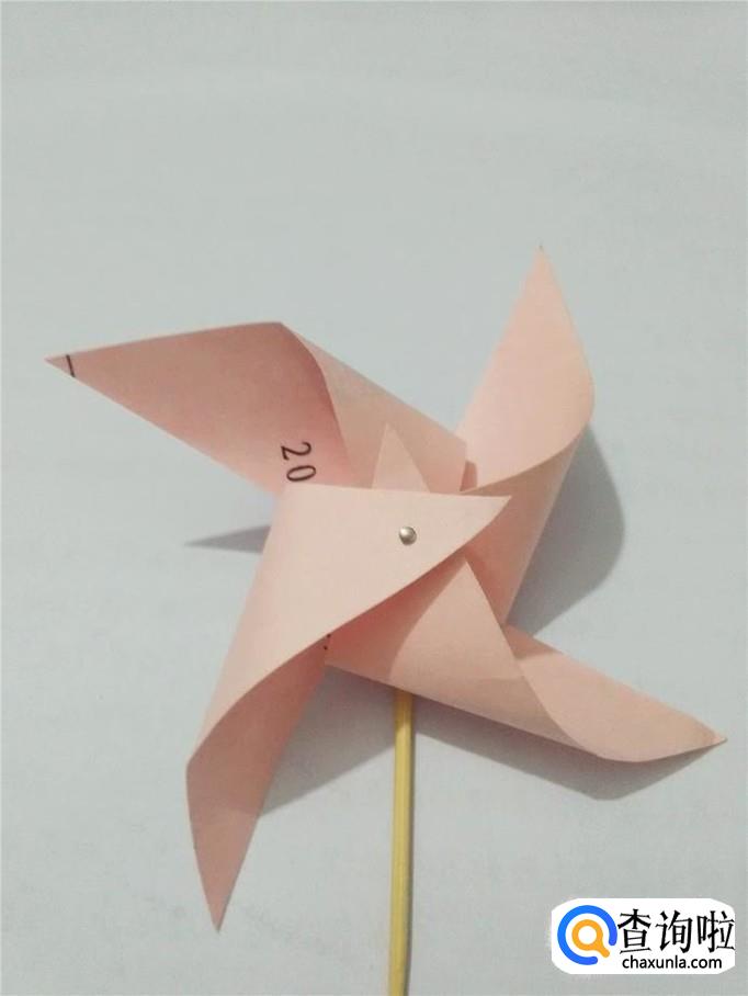 整理一下风车的形状,拿着竹签,来回摆动,风车就转起来了。