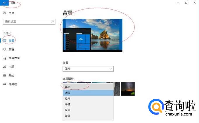 弹出下拉列表选择"填充"项,完成调整桌面图片适合屏幕的操作。