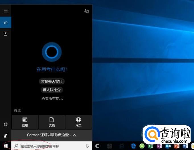 启动WINDOWS 10操作系统,点击任务栏搜索框。